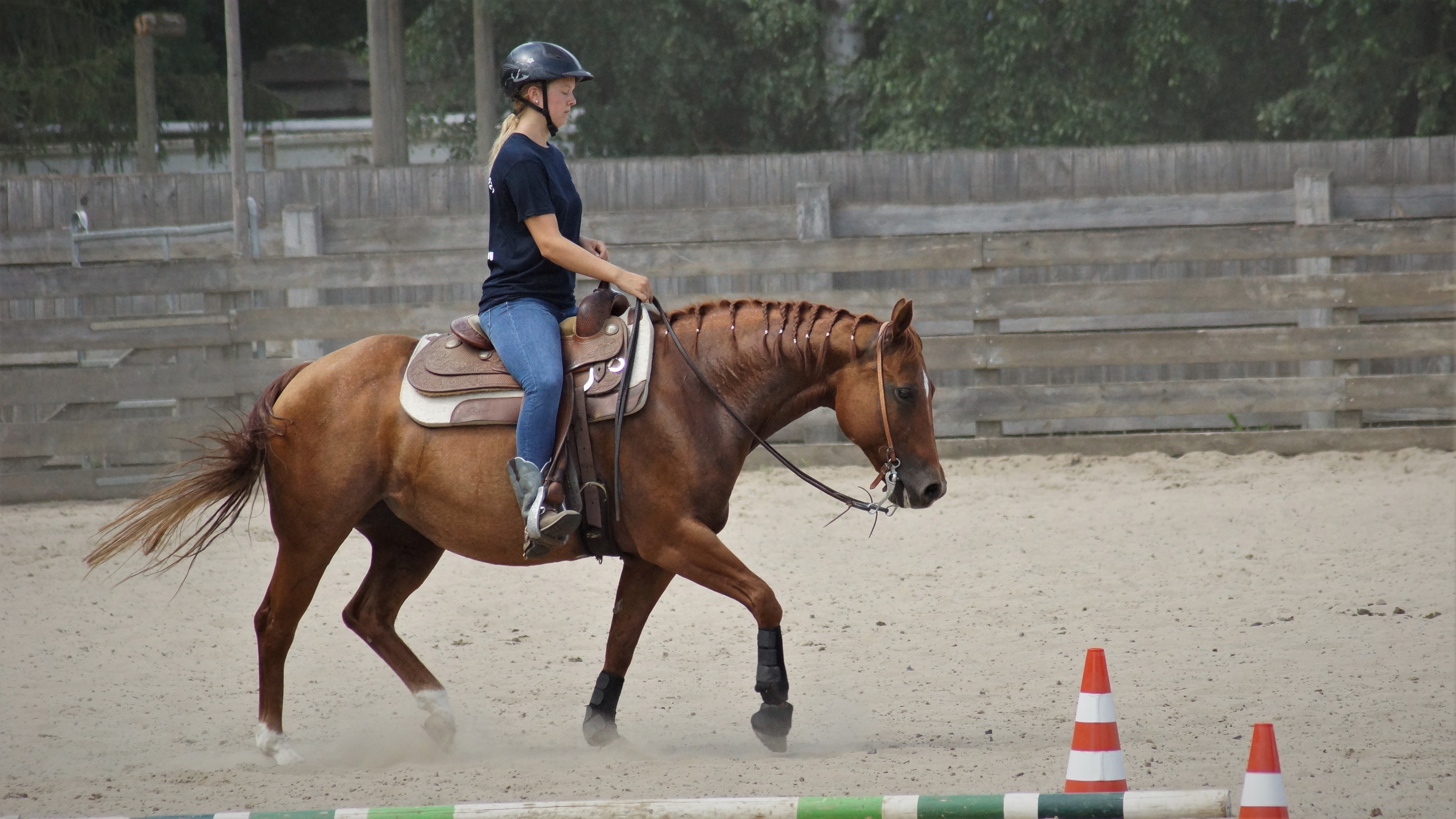 Nach einer weiteren erholsamen Nacht starteten wir in den dritten und letzten Tag des Trainingscamp. Der Mittwochvormittag verlief wie der Tag zuvor mit einer Trainingseinheit bei seiner jeweils dritten Trainerin. Bei dem Mittagessen besprachen wir dann den Mittwochnachmittag. Alle Jugendliche konnten dann nochmal die Pattern vor dem anstehenden Turnier durchreiten oder bei 2 Trainern ihrer Wahl trainieren. Danach wurden die Pferde fertig gemacht und zum Abschluss des Camps haben wir dann alle ein Eis gegessen, welches großzügigerweise von dem EWU-Sponsor Pro und Contra Immobilien gesponsert wurde. Nachdem wir dann aus unseren Zimmern ausgezogen waren und die Autos beladen hatten, leerten wir alle gemeinsam die Boxen und machten die Pferde Verladebereit. Noch schnell die Pferde in den Hänger gebracht und schon waren die drei schönen Tage des diesjährige Jugendtrainingscamps vorbei.
