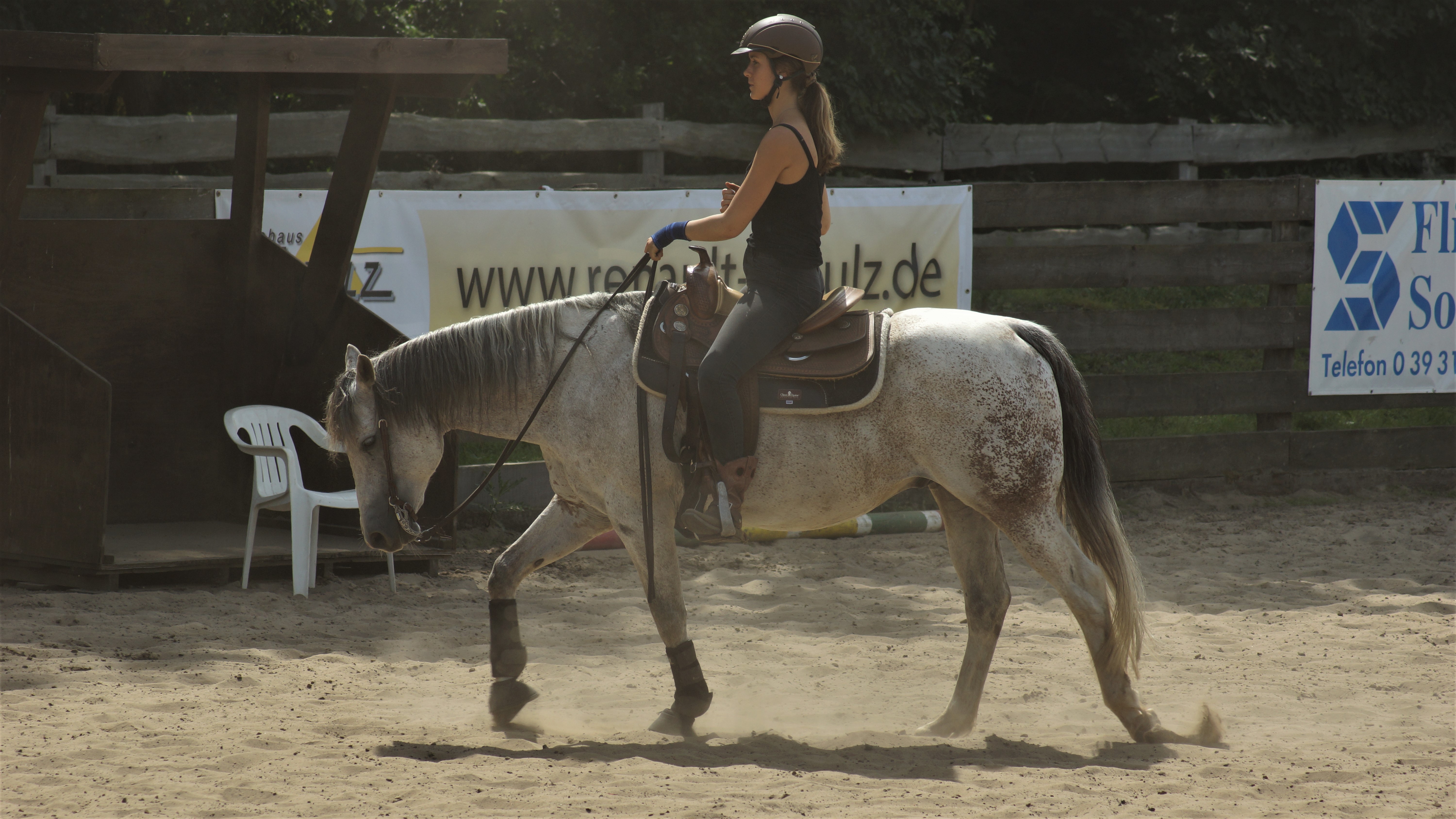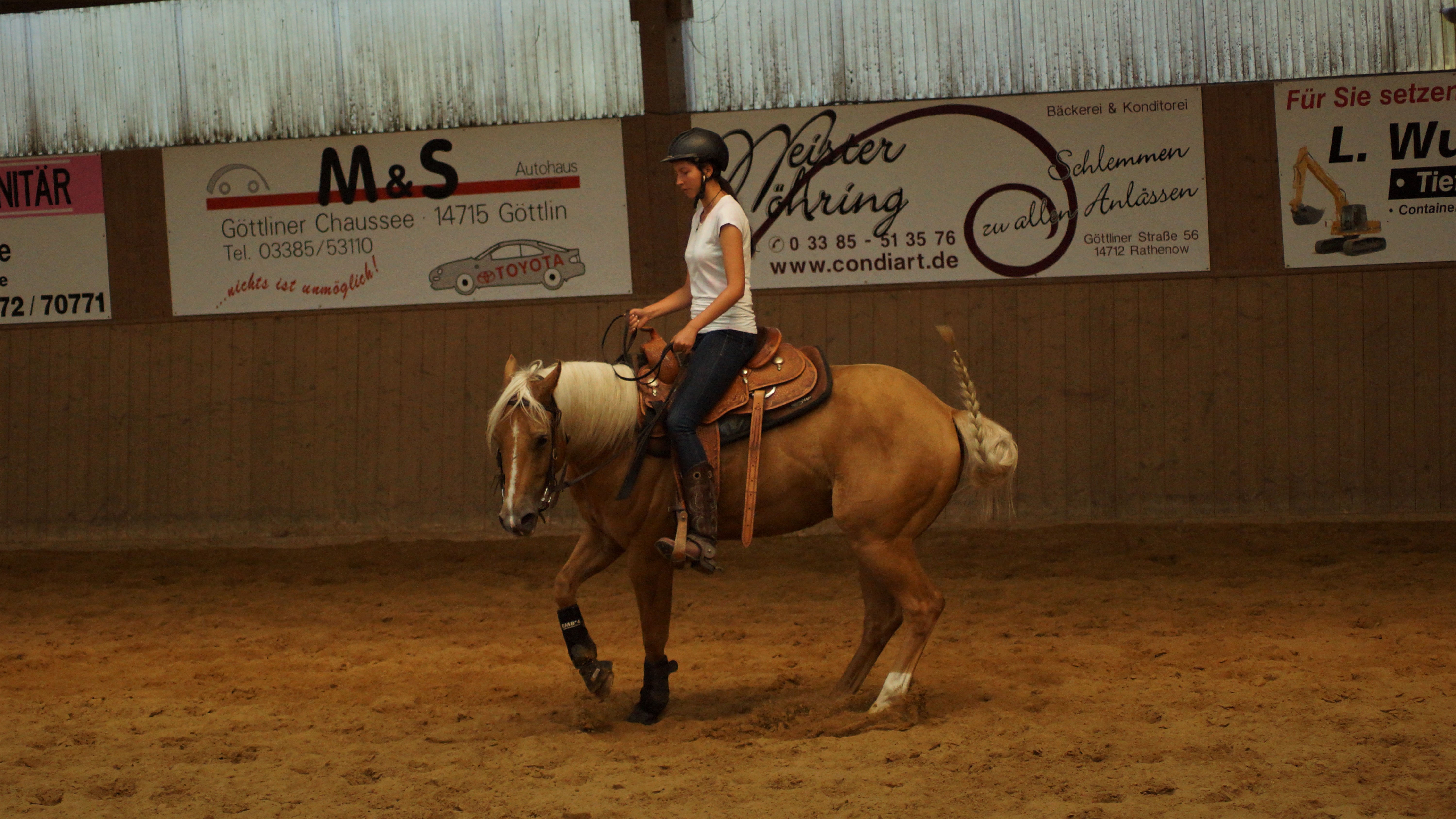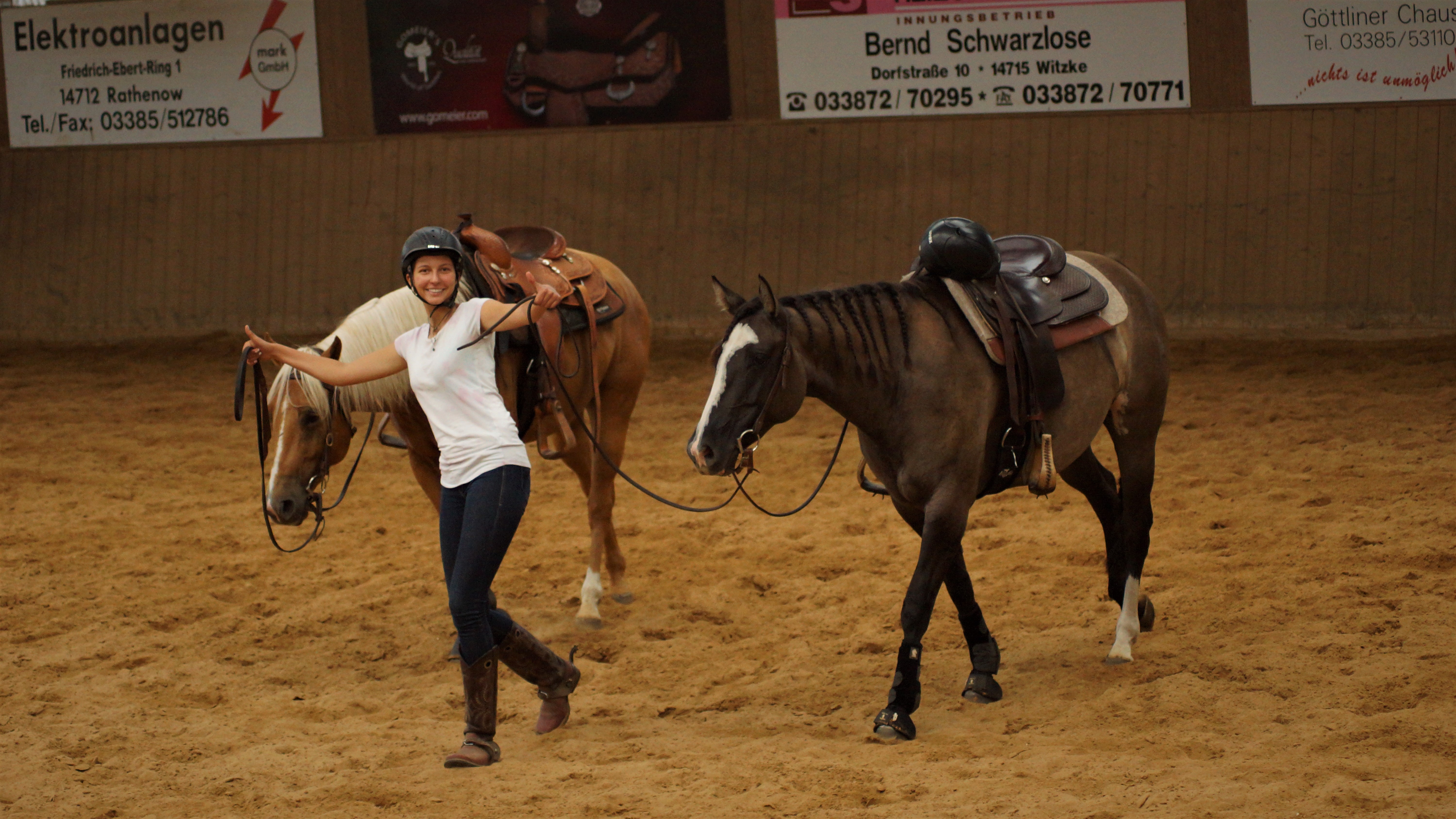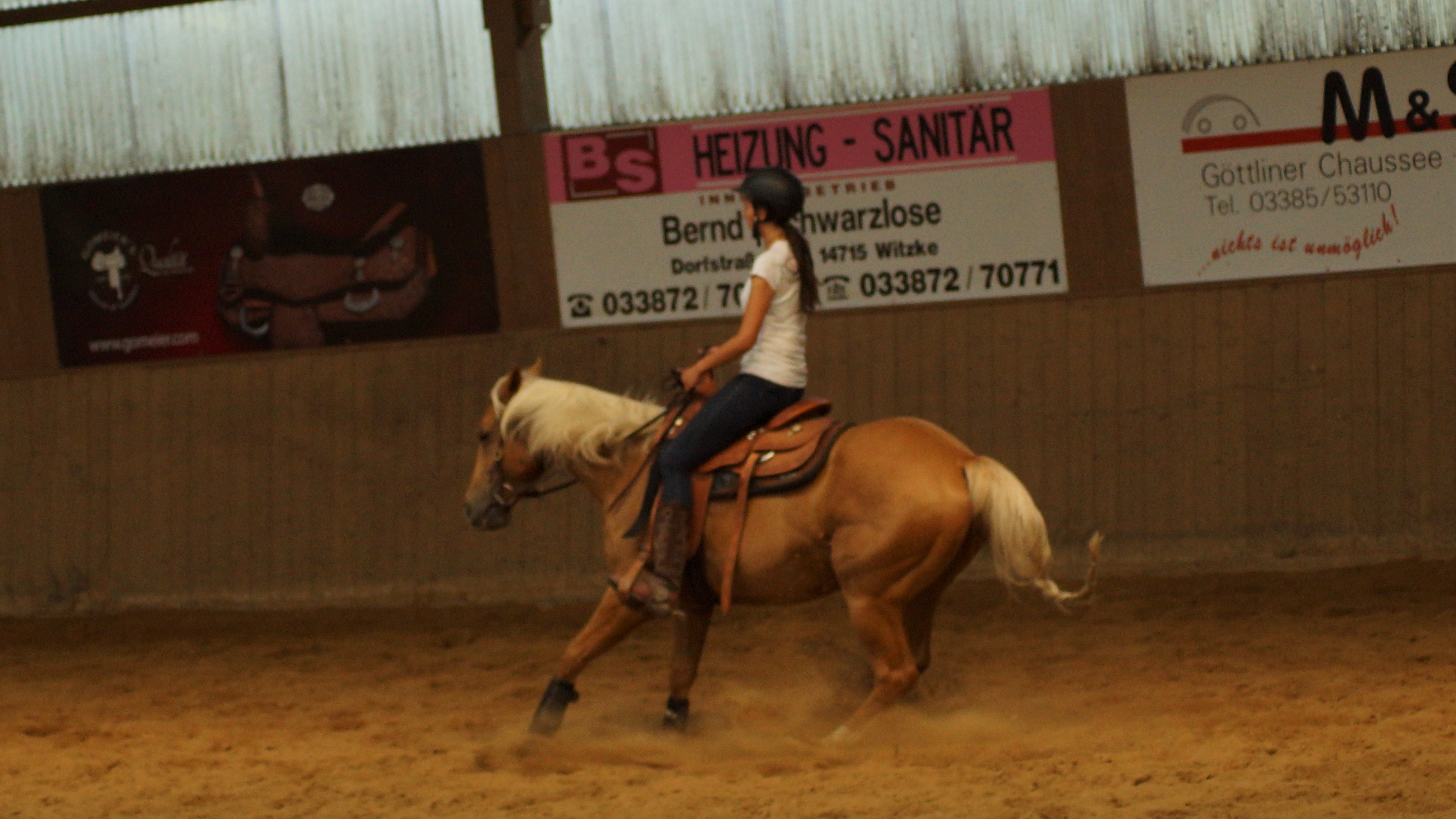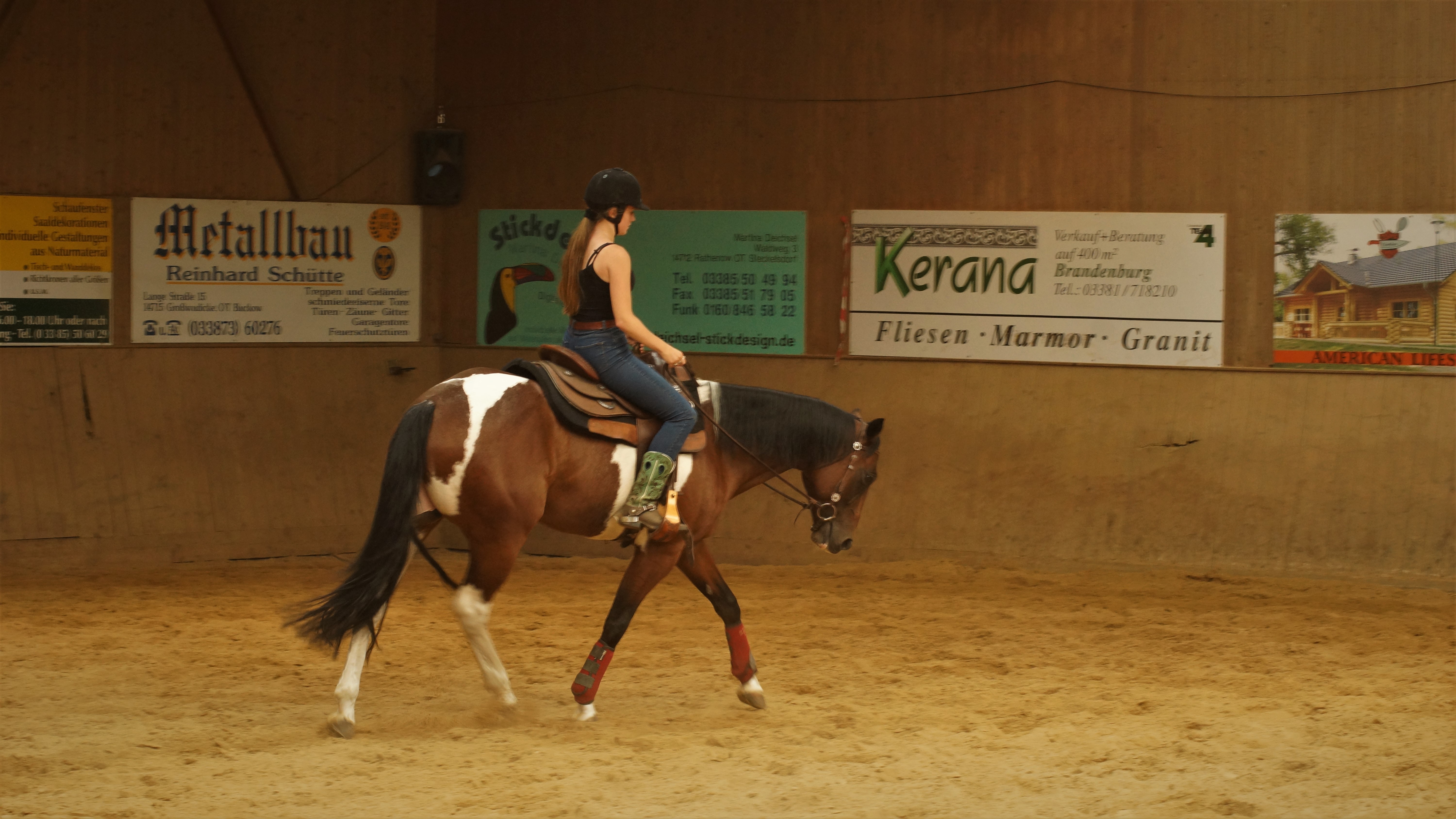 und Reiter eingegangen und brachten zusätzlich die Möglichkeit mit sich in den Reitweisen Trail, Ranch Riding sowie Reining zu verbessern. Nach anderthalb Stunden folgte dann der erste Wechsel und die nächsten drei Gruppen waren an der Reihe. Schließlich gab es dann
