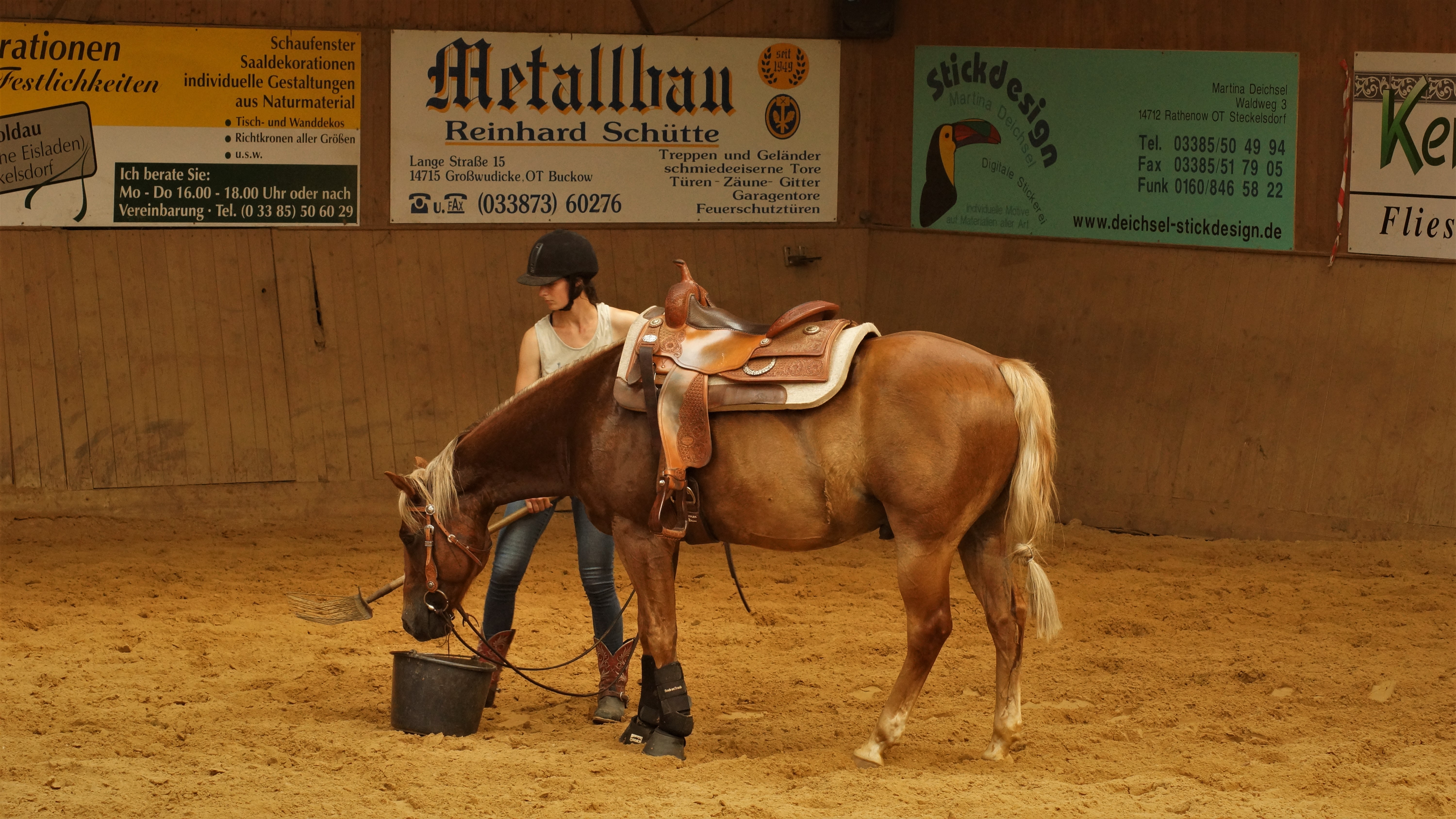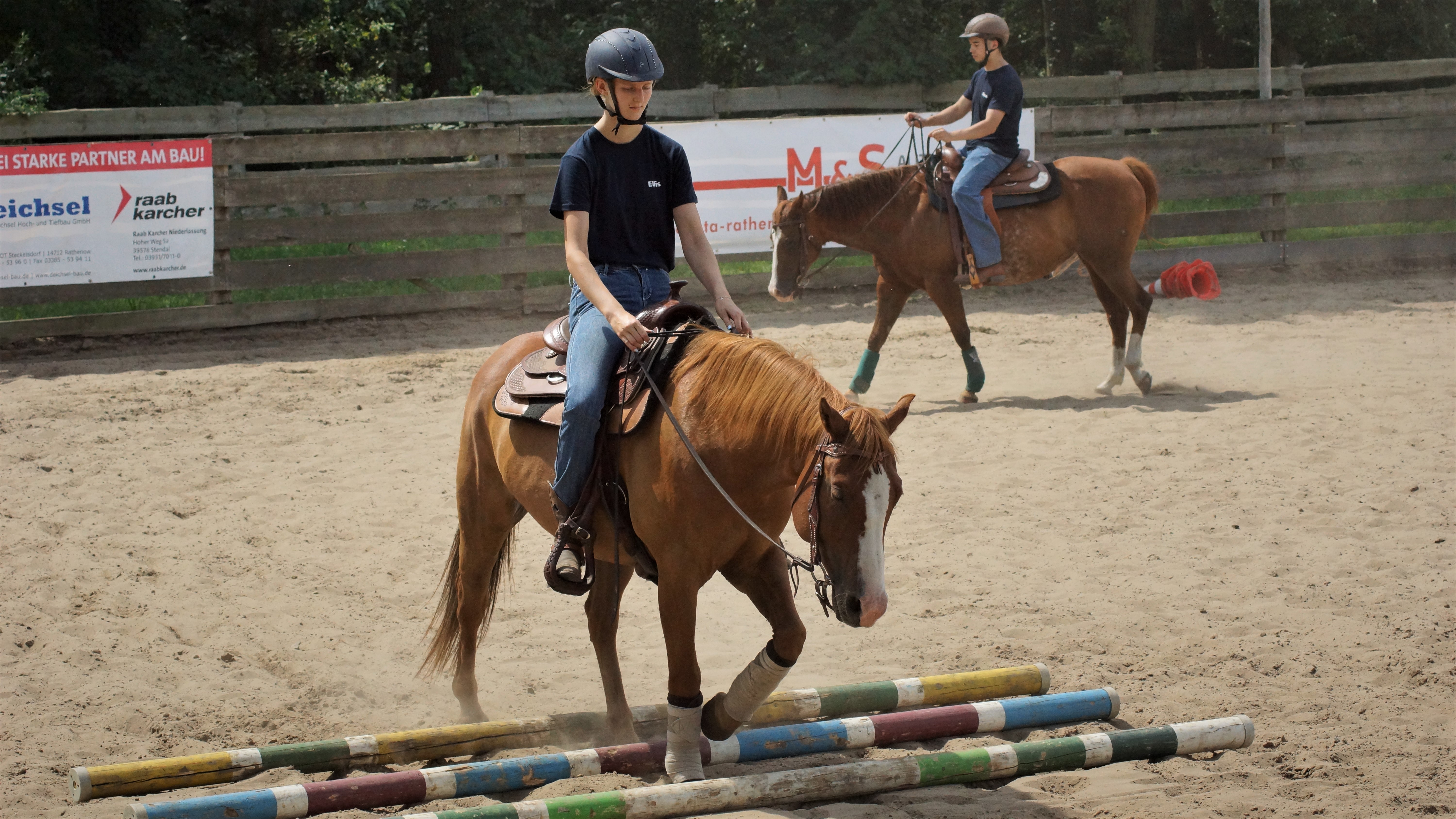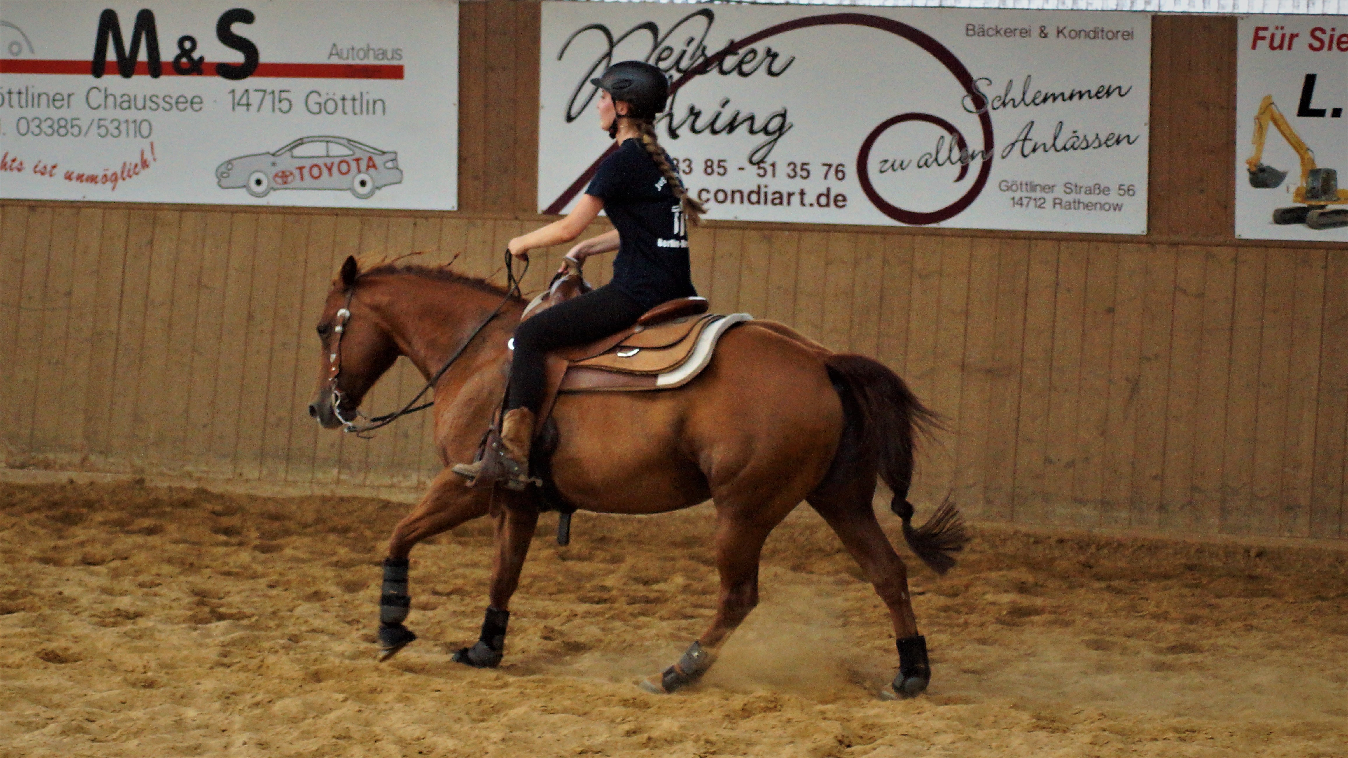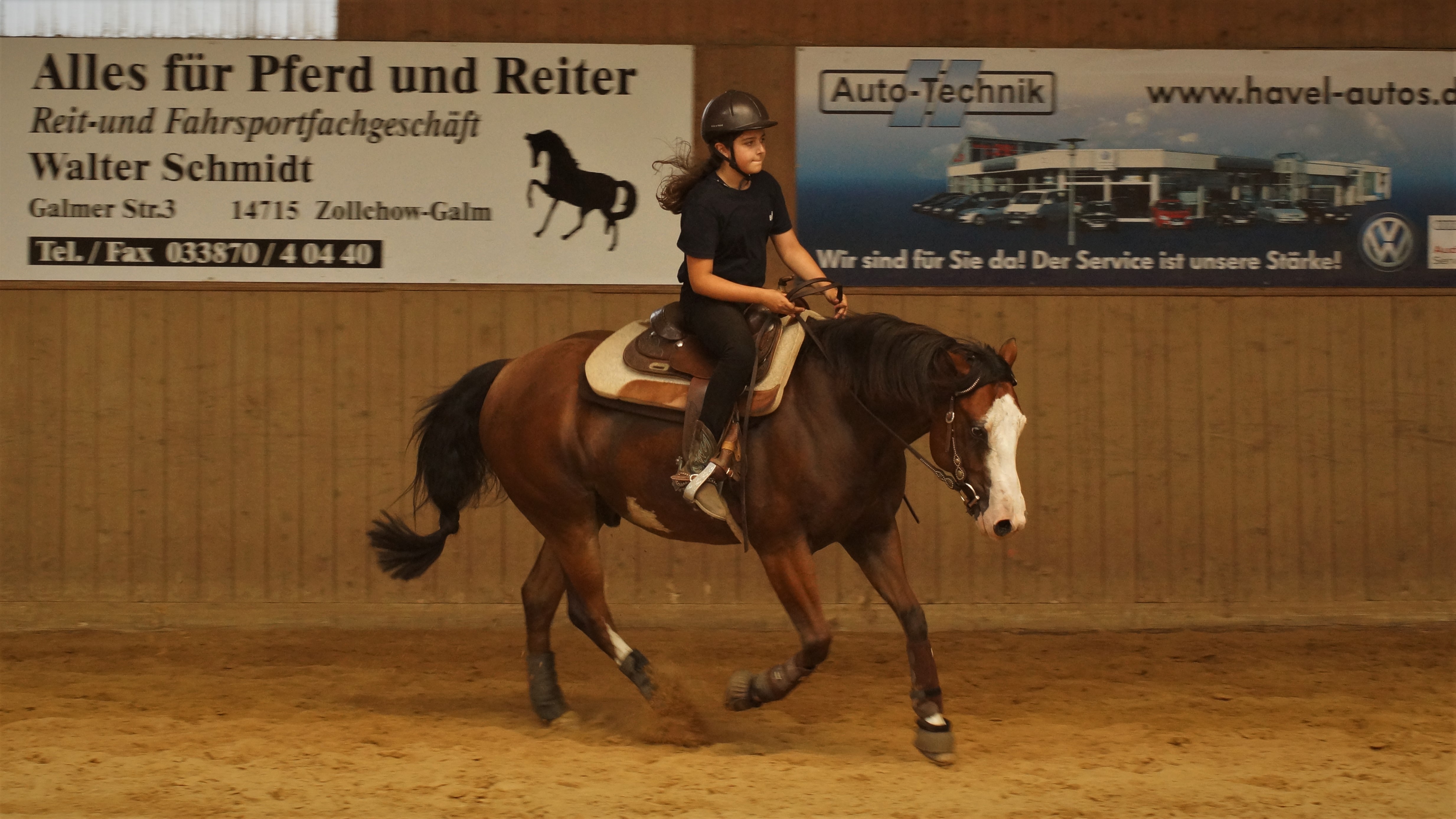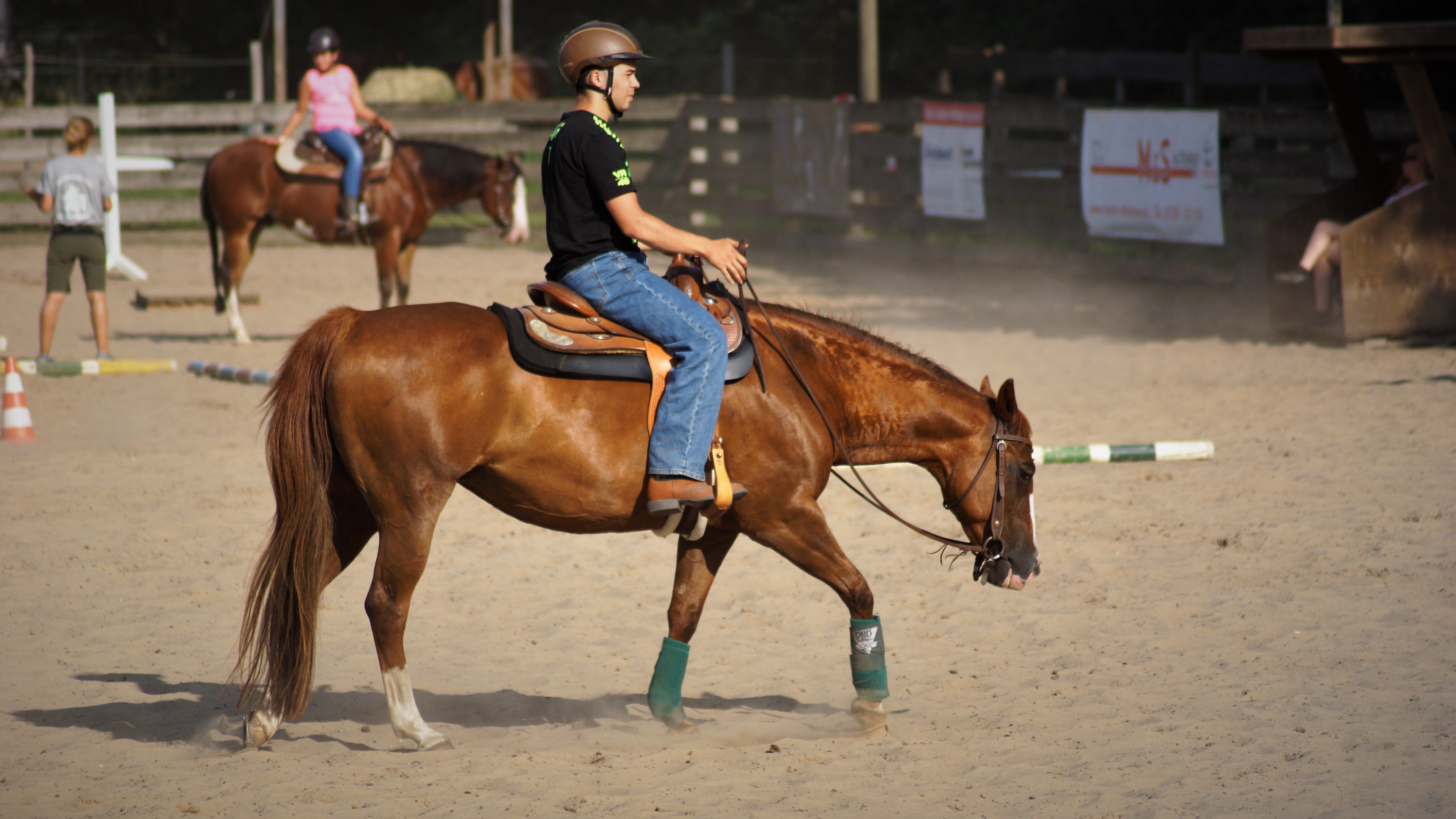 und Reiter eingegangen und brachten zusätzlich die Möglichkeit mit sich in den Reitweisen Trail, Ranch Riding sowie Reining zu verbessern. Nach anderthalb Stunden folgte dann der erste Wechsel und die nächsten drei Gruppen waren an der Reihe. Schließlich gab es dann