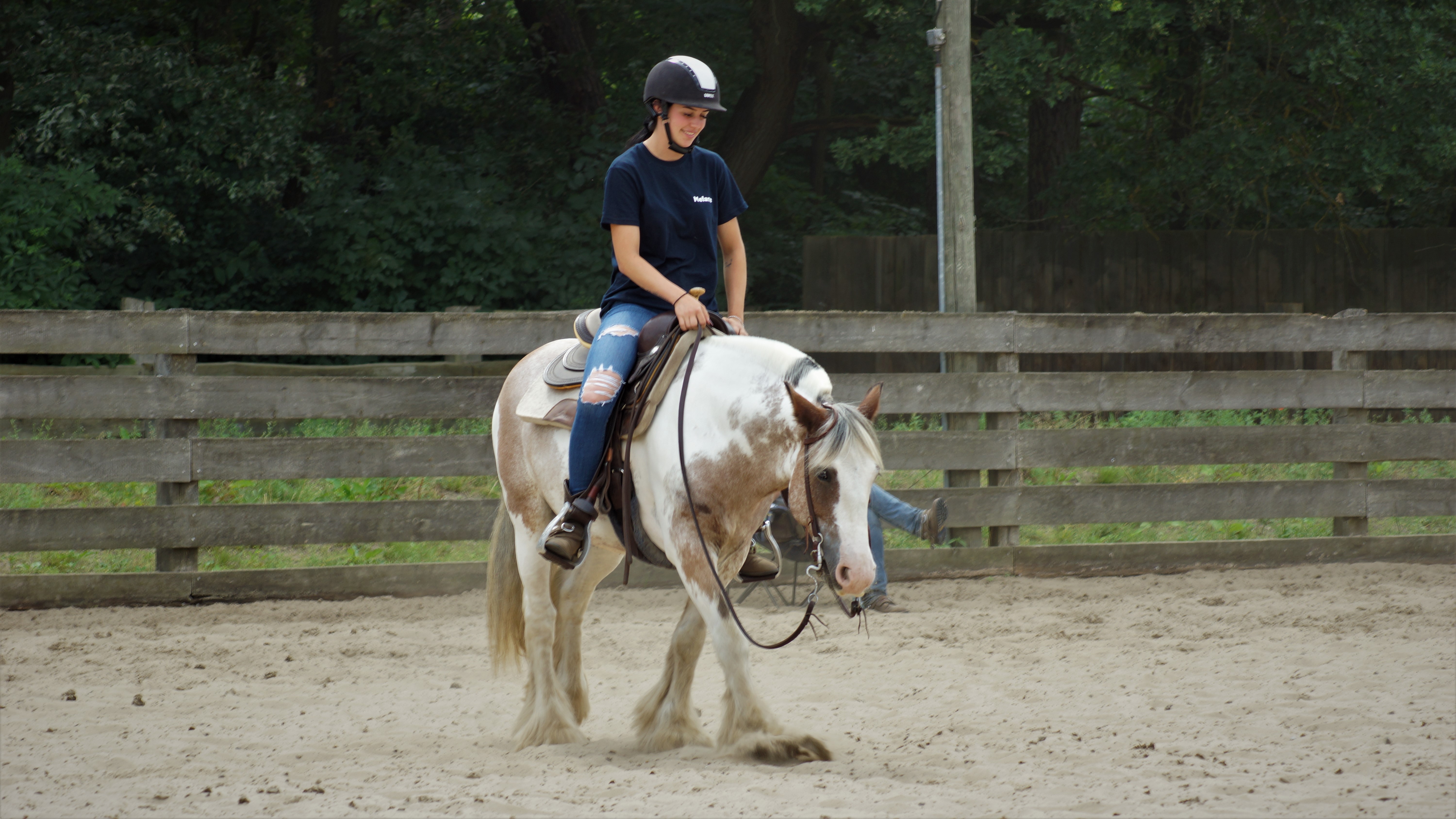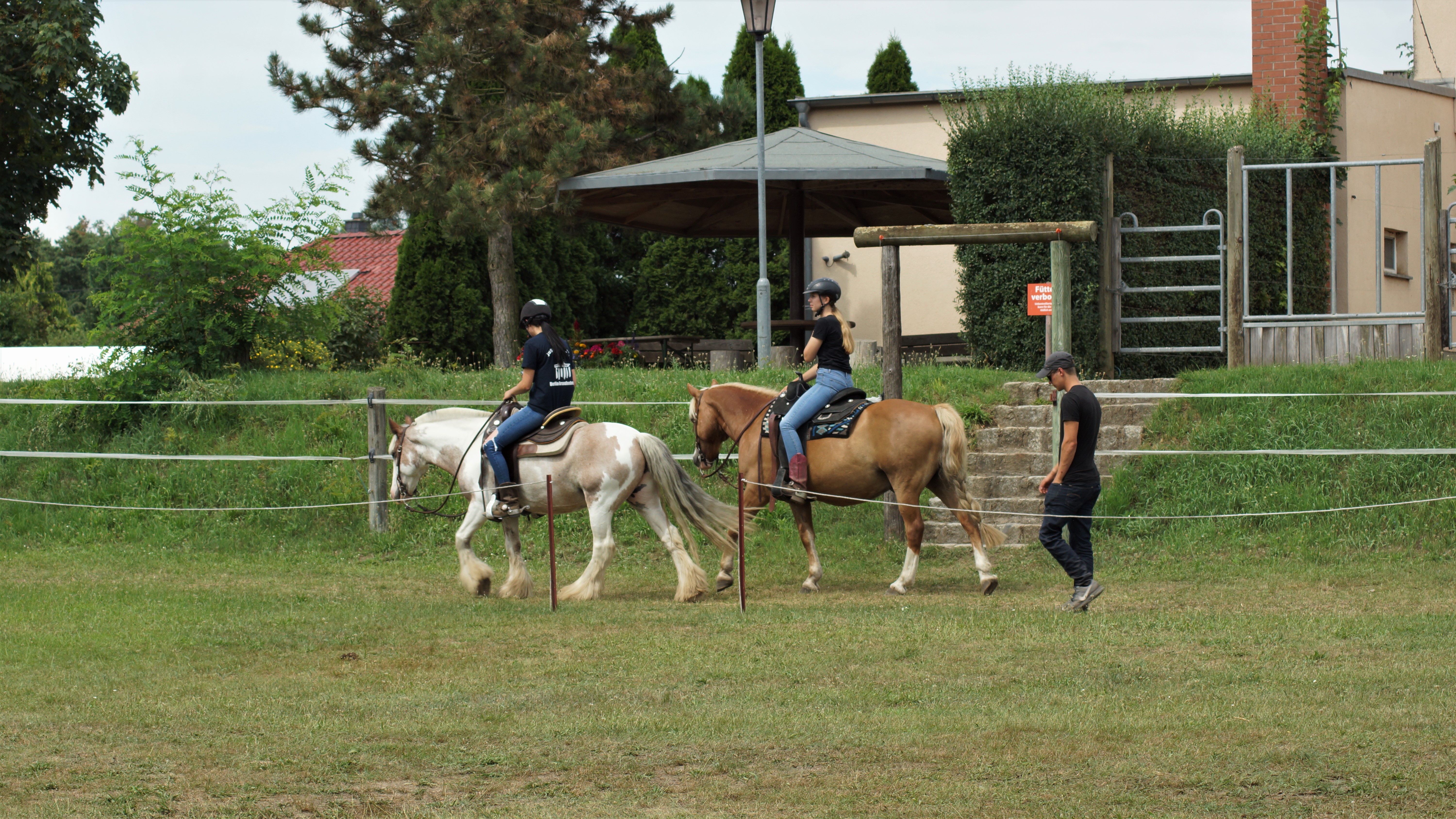 Um 15 Uhr begann die zweite Einheit und somit gab es für jeden auch einem Trainerwechsel. In der Reitzeit der anderen bekamen wir nach der Versorgung unserer Pferde die Gelegenheit beim Training zuzuschauen und so zu lernen. Bis 18:30 waren dann alle 9 Gruppen fertig mit der zweiten Einheit. Nach abendlicher Versorgung der Pferde konnten wir uns auf ein gemeinschaftliches Grillen freuen. Neben dem Essen haben wir uns ausgiebig miteinander unterhalten und uns alle etwas besser kennenlernen. Ein letzter Blick auf die Pferde und schon stand einem ruhigen Abend auf dem Hof oder am See in der Nähe nichts mehr im Weg.