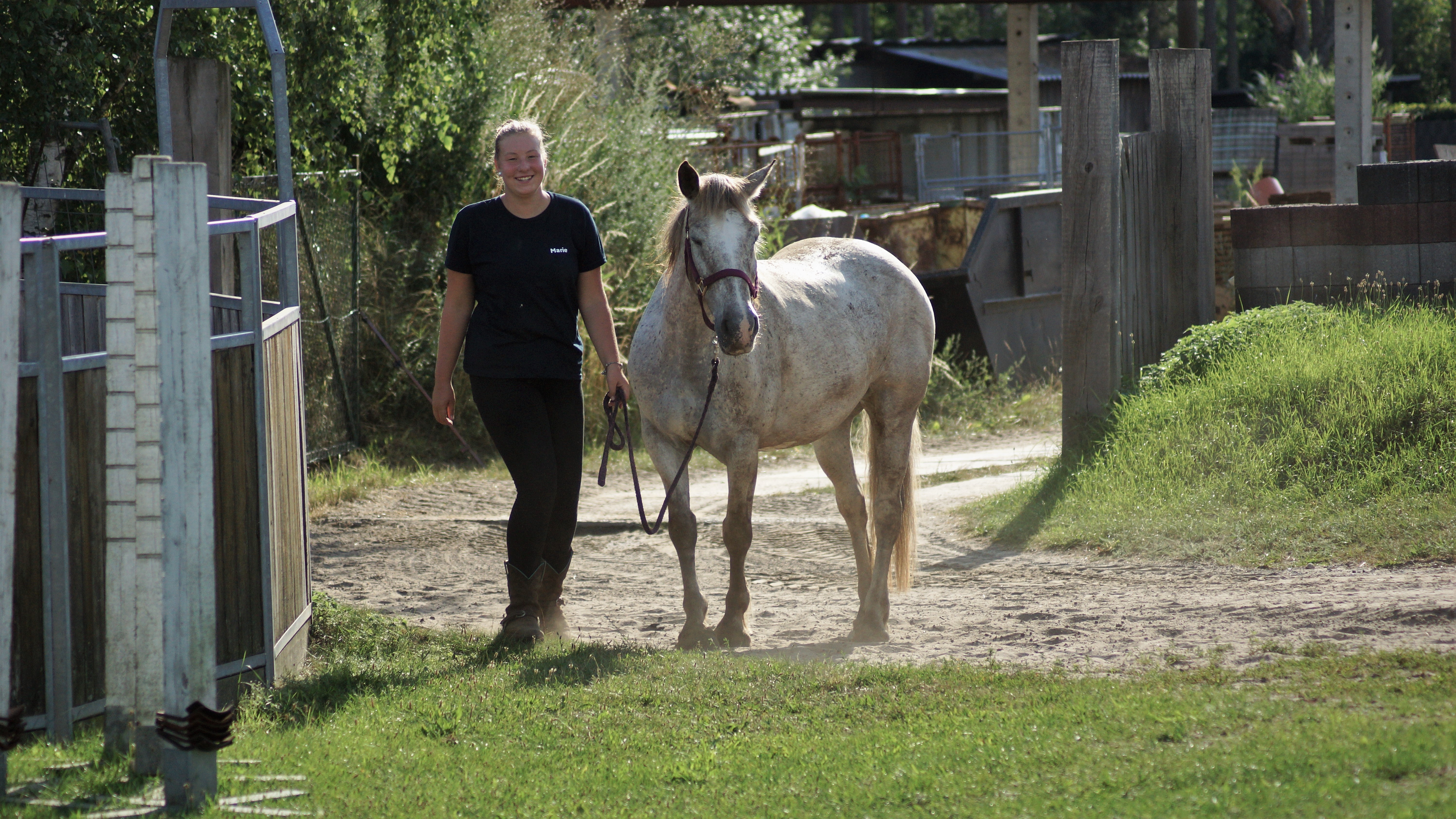 Nach dem Ausladen der Pferde wurden die schon fertigen Boxen bezogen und Paddocks aufgebaut. Dann haben wir noch schnell Heu und Wasser verteilt und schon konnten die vollausgestatteten Zimmer bezogen werden, bei denen kein Wunsch offen blieb. Von Bettwäsche über eigene Badezimmer mit Handtüchern bis hin zu einem Fernseher waren wir vollkommen ausgestattet worden.